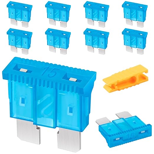 JatilEr Kfz Flachsicherungen 15A 10 Stück Set mit Sicherungszieher für Auto, LKW, Motorrad, Boot 12V – EU5-10